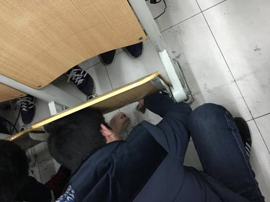 12月13日本周日晚,我们在教室进行了卫生大扫除工作。武主任来班级检查,要求把电线重新布局,因为横路上人来人往,很容易把电线踩破皮而发生安全事故,为了同学们的安全着想,所以要求各班级重新布线,周日晚上在班主任的带领下,我们开始了卫生大扫除工作。