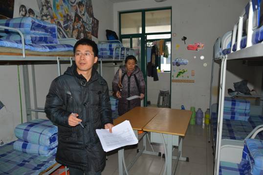 周三下午,学校宿舍检查,我班宿舍也比平时收拾的更加干净整洁,软件系领导对学生内务进行评价指导。
