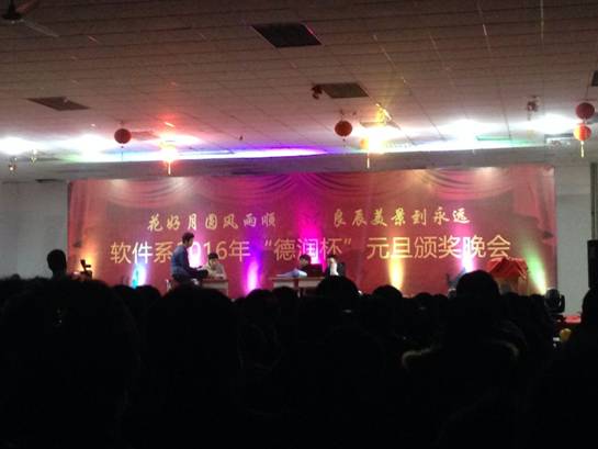 在2016年来临之际,本院校软件系举行元旦文艺晚会。本着让所有同学在即将结束的一年,能以欢乐的节目迎接新的一年的开始,丰富同学们课余生活的主题,表彰这一学期以来有突出表现的同学,同时在晚会进行中,对他们表示鼓励。