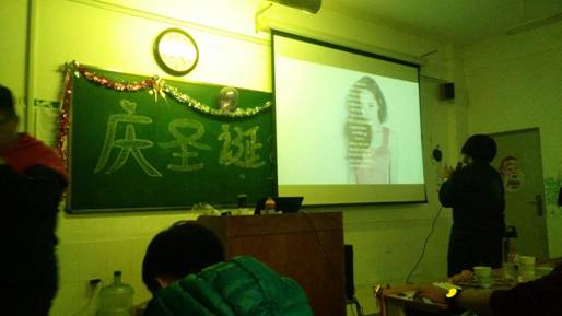 圣诞来临,元旦还会远吗?为了放松同学们紧张的学习气氛,娱乐同学们的欢乐的氛围,我网络班商量决定开展双旦晚会,12月25日晚上,7点正由几个同学做游戏开场,大家全身关注投入到了游戏中,场面其乐融融。