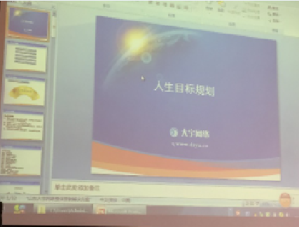 这周我班网络营销专业课老师给同学们上了一堂“确立人生目标”的课,老师通过讲述自己的经历来引导同学,通过播放PPT给同学们讲解名人名校是如何为同学规划人生目标,如何实现自己的人生价值。