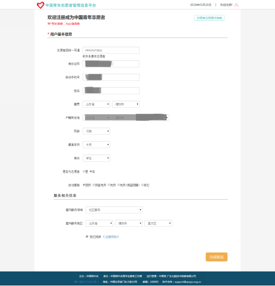 志愿者注册页