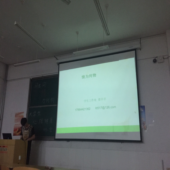 2016年5月17日晚自习,我院心理协会在电子系大合堂开展由梁亭亭老师主讲的《问世间情为何物》心理讲座。