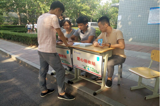 2016年9月2日下午,我院青年志愿者李玉龙、韩敬华等同学在学院二号教学楼下顺利开展本学期第一期 “衣衣不舍&旧衣回收”公益项目。