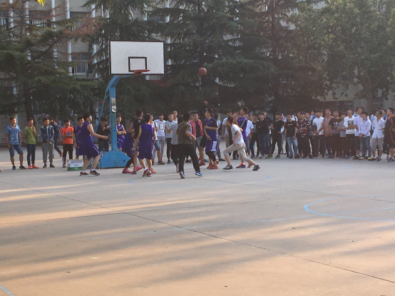 本次比赛的规则和前几届比赛的形式一样,都是晋级赛的形式来较量高低。本届比赛有一大新特点就是加了罚球这一规定,一队累计达到五次犯规就给对手加一次罚球机会和以往的犯规加分不同,加大了比赛的竞技性。看着每个班的队员都斗志昂扬,奋勇拼搏,在自己最喜欢的赛场上空划出一道又一道青春的弧线,挥洒汗水,给观众带来一场丰富精彩的视觉盛宴。球场下各班班主任和同学们也积极的参与其中,成为了拉拉队为参赛队员摇旗呐喊,加油鼓劲。