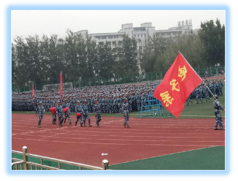 上周六,伴着阅兵仪式的结束,我们的军训生活也结束了,虽然那天刮着寒风下着冷雨,却没能打压我们的气势。当我们高喊着:刻苦学习发奋成才的时候,当我们踏着整齐的步伐走过主席台前的时候,顿时觉得无比骄傲和自豪,半月来所有的汗水都是值得的。我们已由第一天军训时稚气未脱的模样变得昂首挺胸,英姿飒爽,也从刚开始的不情愿变得依依不舍。