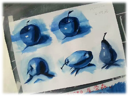 上周,身为动漫班的我们开始了第一次的水粉课,由生硬的素描转到多彩的水粉,同学们都激动万分,两人一组分工,打水、泡画笔、分颜料,同学们都忙活着做准备工作,忙活完了之后便开始了试手,从调色到动笔,虽动作笨拙但却十分认真。