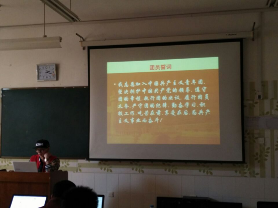 在3月27日下午,我们班团委借着上自习课的时间在教室开展了“一学一做”主题主题班会。班会上介绍了有关共青团的一些基本知识:首先讲解了团员的总则,以及各个层次的团组织。接下来科普了一些常识:团徽,团旗,团歌,让同学们对共青团有了深层次的认识。最后在团委的带领下,全体同学宣读了团员誓词。整个班会在活跃的氛围下圆满结束。