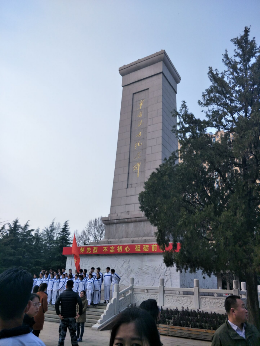 同学们来到潍坊市烈士陵园,慢步在甬路上,了解了革命先辈的感人事迹,心情十分沉重。在烈士英雄纪念碑前默哀表示我们的悲伤。通过纪念先烈的英勇事迹,继承发扬老一辈革命家的优良传统,以提醒同学们珍惜现在的美好生活,勤奋学习,勇于开拓创新。