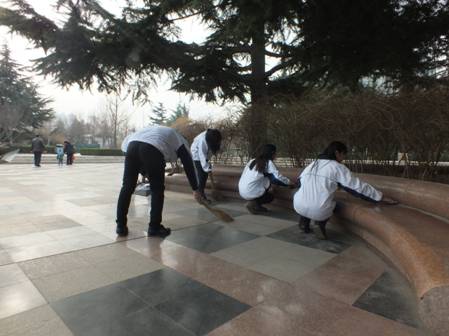 为响应学院“乡村文明——志愿者在行动“的号召,为进一步教育和引导我系广大青年学生践行社会主义核心价值观,大力普及“学习雷锋、奉献他人、提升自己”的志愿服务理念,培育“我为人人,人人为我”的道德风尚,于2014年12月23日,我系20名学生干部对潍坊市奎文区人民广场及周边公共自行车进行了清洁,学生们在活动中的积极表现得到了散步老人的夸奖。