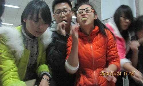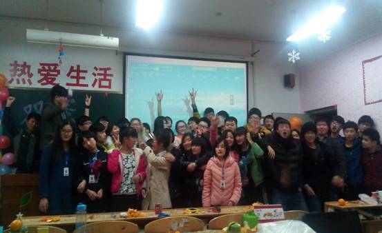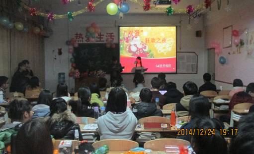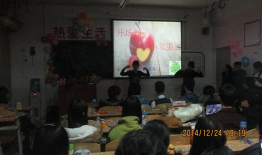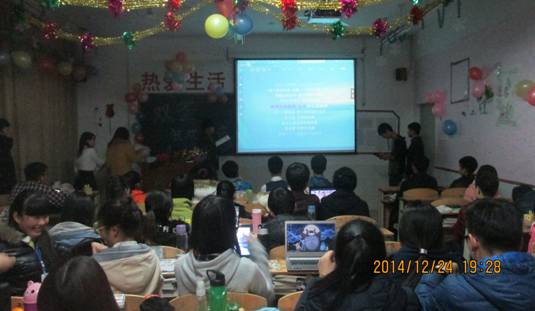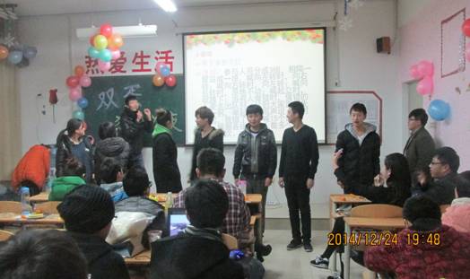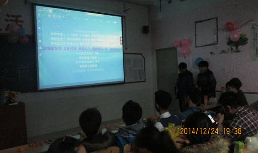 2014年12月24日我班利用下午的课余时间和晚自习时间组织了开学来第一次集体的大规模活动——庆祝“双蛋”联欢之夜!