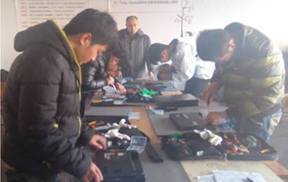 2015年1月10-11日,联想LCSE认证的笔记本拆装考试和服务规范两个模块考试如期在我院进行,13软件6班同学对本次比赛非常重视,准备充分,全班同学多数顺利完成了两个模块的考试。笔记本拆装模块要求同学在45分钟内按操作规范完成笔记本拆装;服务规范模块由联想考官提出问题,由同学模拟联想员工对客户服务的语言规范、举止规范等。前两模块的顺利完成,为同学树立了信心。同学们现在对LCSE认证的网络考试及早开始准备,争取认证的全部模块均考试通过,顺利取得LCSE认证证书。