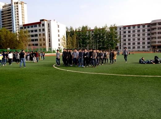 我班积极响应院系号召,每天二课时间准时到足球场集合,进行运动会方队训练,全班同学积极配合班干部安排,完成相应的队形要求。