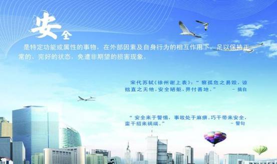 当我们一家人在享受天伦之乐之时,当我们在孝敬父母的时候,当我们在看见孩子成长过程中出现的喜悦和宽慰之时,有多少残缺的家庭无法再拥有这一切,人生的悲哀是无法用语言来形容的.安全,我们工作必须在安全下操作,我们必须保证自身的安全,安全教育我们每一位职工,要想保证安全,就必须努力学习设备、工艺知识、熟知其性能,如何正确操作,操作时需注意的各种事项,遇到危险时该如何对待,只有精力充沛、思想集中、时刻紧绷安全之弦,才能使我们的生活充满阳光和幸福。
